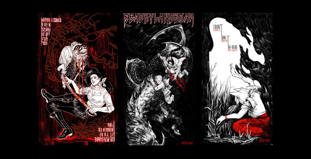 Simple sketches with optional B&W flat color fills; paid for via my Ko-fi page: €10. NEW: discount for pairs: €15